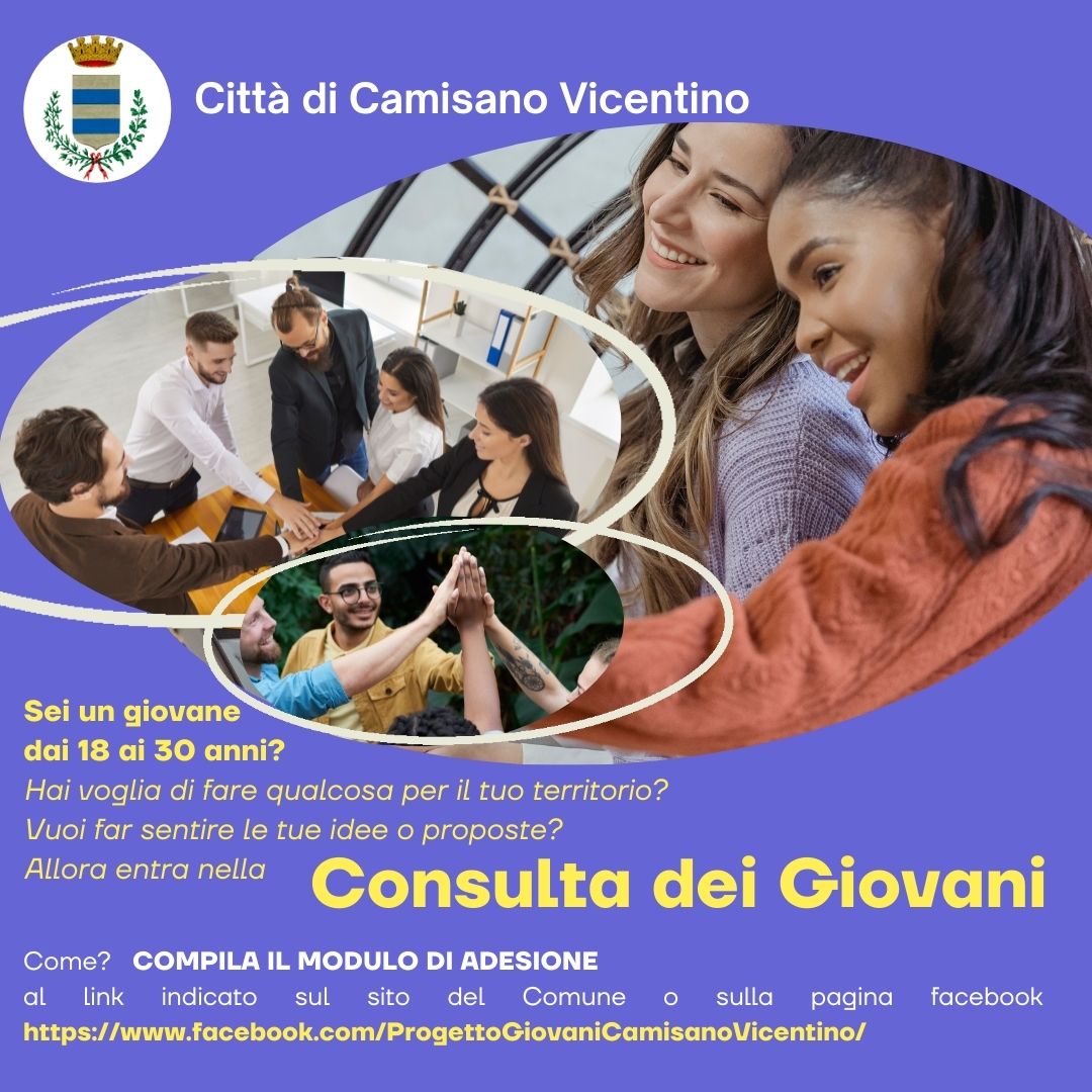L'Amministrazione Comunale di Camisano Vicentino vuole condividere un interessante progetto dedicato ai "giovani camisanesi": la costituzione di una "CONSULTA DEI GIOVANI".